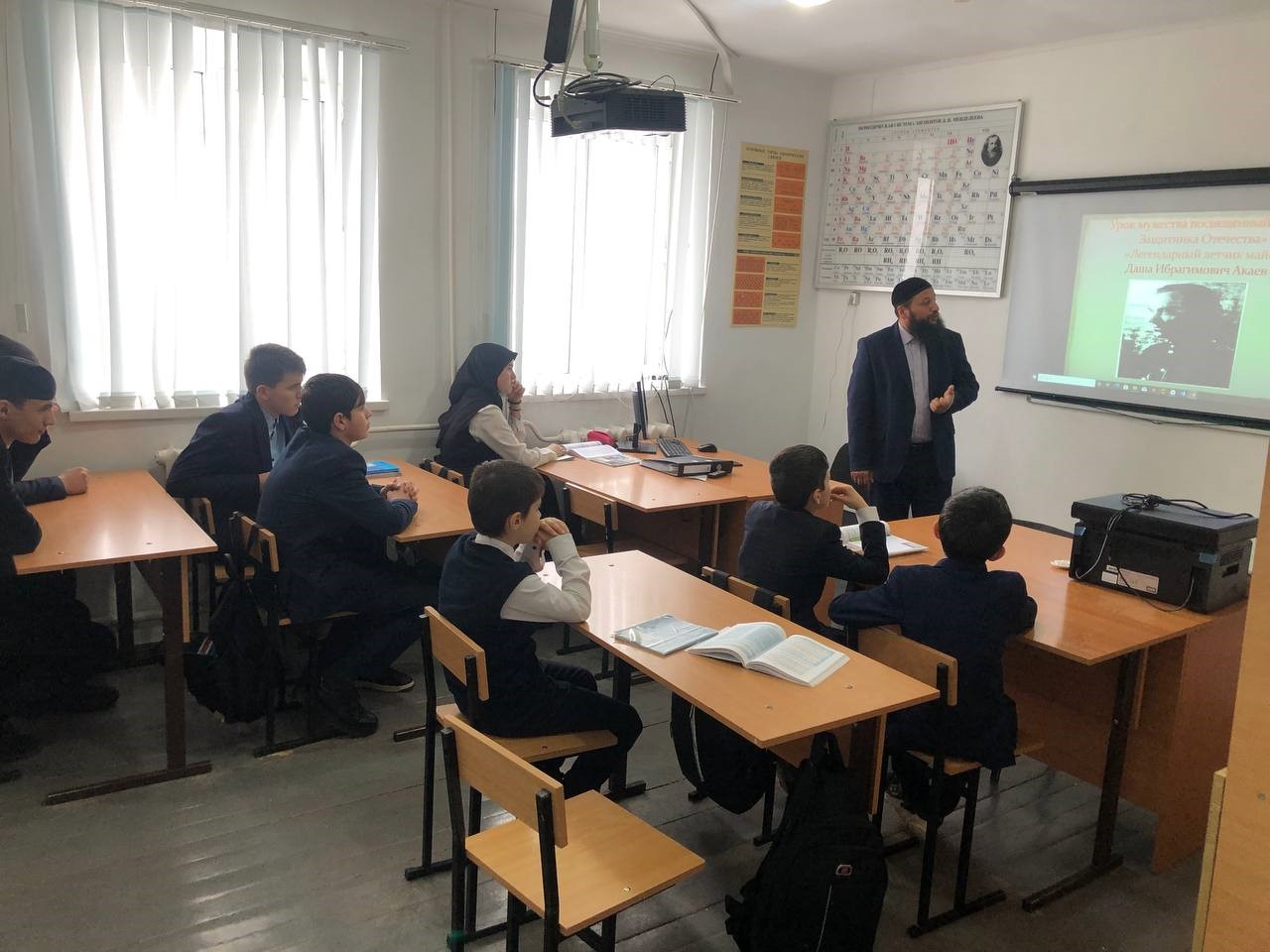 20 февраля учителем истории и обществознания Хатуевым Ж.А. совместно с отделом УФСБ России по ЧР в Ножай-Юртовском районе, в целях военно-патриотического воспитания проведен урок Мужества, приуроченный Дню защитника Отечества. Охват 9 чел.