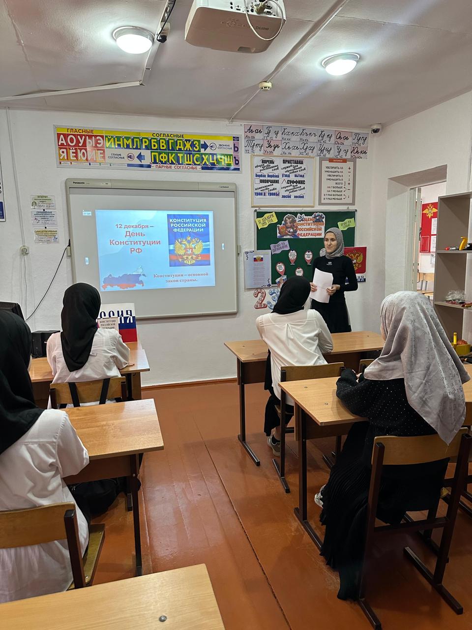 Во взаимодействии с Отделом в Ножай-Юртовском районе УФСБ России по Чеченской Республике в МБОУ «ООШ с.Бешил-Ирзу» 06.12.2024г. проведены классные часы, приуроченные Дню Конституции РФ.